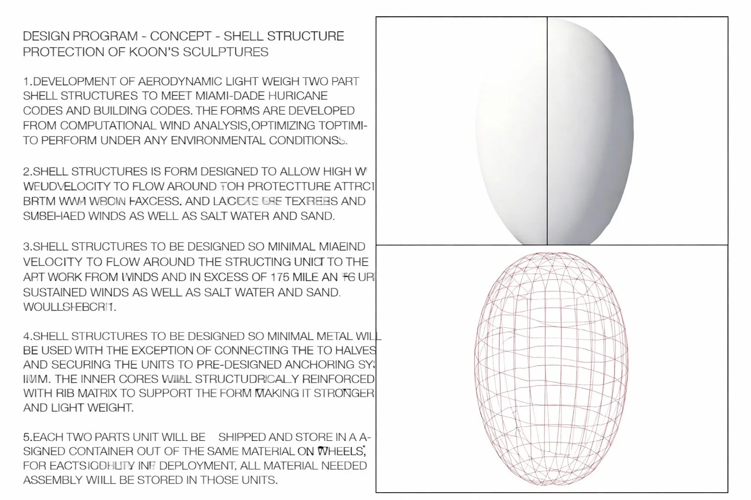 Studio DanReiser was commissioned to develop a protection system for sculptures by Jeff Koons. The works were to be installed in Miami, within one of the most stringent hurricane code zones in the United States.