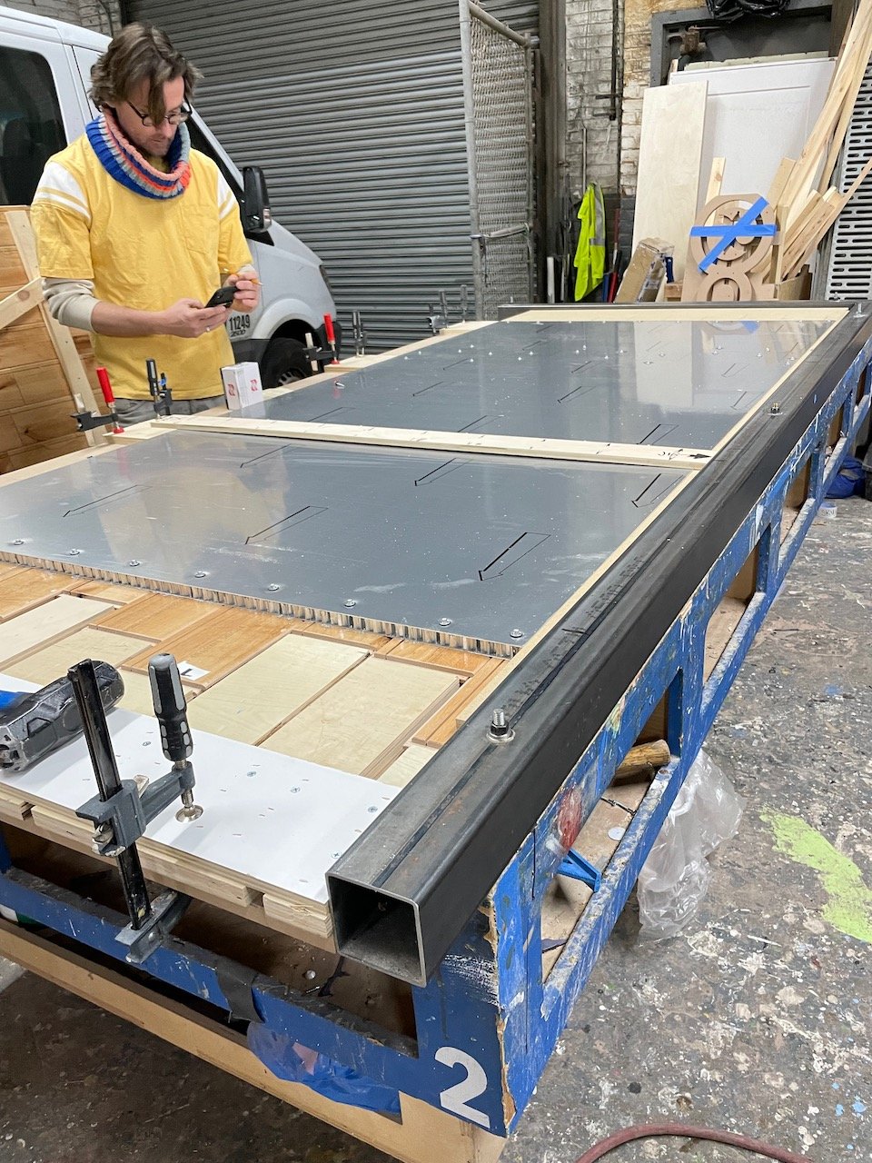 “At the fabrication shop, the architect and fabricator conduct a detailed review of the dome’s components—refining installation strategies and verifying design intent before on-site assembly.”